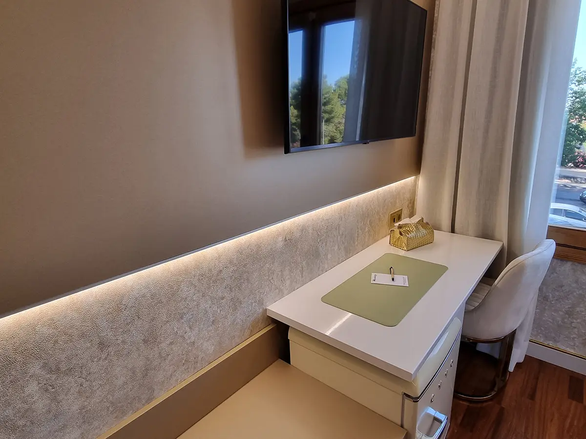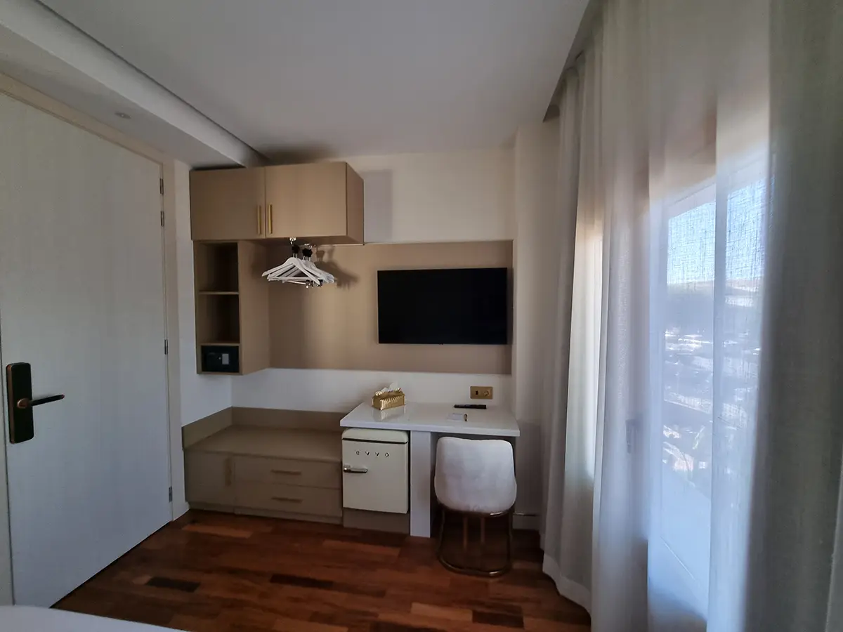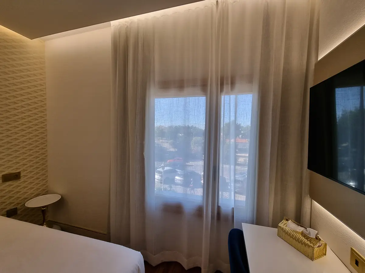 Habitación exterior con vistas a la calle y parking con zona arbolada. Tiene dos camas de 1,05 m. Baño completo. Es una habitación insonorizada, con TV de 40´ con Smart tv. Consta de escritorio, armario, caja de seguridad y  servicio de minibar.